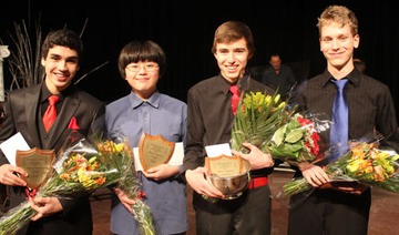 Nate Houston (2nd from right) is surrounded by the 2012 Festival Outstanding Performers (left to right) Thomas Vezina - vocal, Tim Quan-Zheng - piano and Erik Fréchette - strings.
